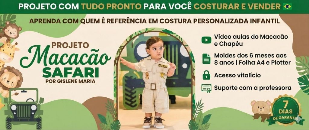 Não perca a chance de vender em dobro! Adicione o Projeto Vestido Safari ao seu pedido e ofereça o conjunto perfeito para irmãos ou gêmeos na festa. Com a grade estendida (6 meses aos 8 anos), você atende desde a bebê até a irmã mais velha. Garanta as Aulas + Moldes agora e lucre atendendo a família toda! Aproveite o preço único desta página para adicionar variação com desconto exclusivo!