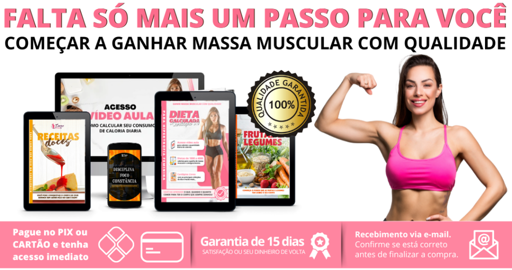 đ„LEVE JUNTO! đ Se vocĂȘ estĂĄ determinada a transformar seu corpo, nĂŁo perca a oportunidade de levar tambĂ©m o kit de e-books com receitas secretas mais poderosas para hipertrofia. đ E-book 1: Receitas Salgadas para hipertrofia; đ E-book 2: Receitas Doces para comer sem peso na consciĂȘncia; đ E-book 3: Vitaminas Potentes para hipertrofia đ Todas as receitas sĂŁo saborosas, prĂĄticas de fazer e com ingredientes acessĂveis. Acelere seus resultados com essas receitas exclusivas! Oferta Ășnica!