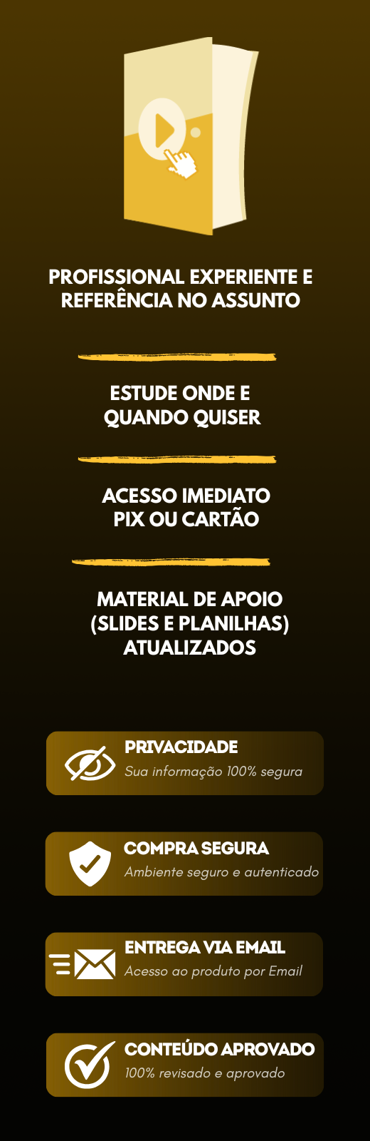 Adquira este CURSO com 40h em vídeos, muita PRÁTICA e material de apoio super completo. No cartão em até 12 x, recorrente em até 8 parcelas. **Acesso PLUS (até 4 usuários)**
