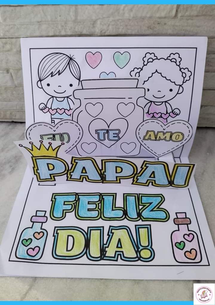 ❤️Cartão 3D potinho de amor para colorir Dia dos pais.