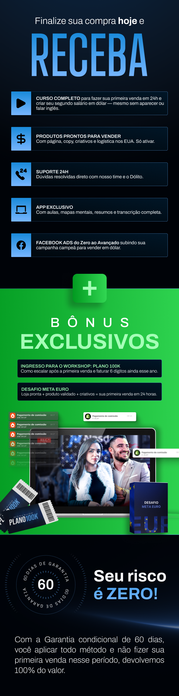 Perfeito pra quem quer começar a vender rápido sem depender de sorte ou tráfego caro. ✅ Método prático em vídeo: passo a passo simples e direto ✅ [ARQUIVO CONFIDENCIAL] — Headlines Matadoras Que Vendem em Dólar ✅ Setup pronto em minutos (página + template validado) ✅ Estratégia sniper → aparece só pra quem já quer comprar ✅ Desafio da primeira venda: passo a passo até bater sua notificação 💰 [SÓ HOJE]