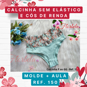 Molde Calcinha Sem elástico com Cós de Renda Ref. 150 + Aula (Grade P ao GG)