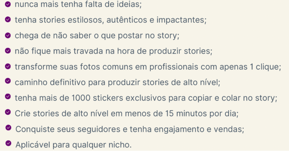 đAumente seu engajamento e vendas com roteiros validados. Tenha acesso a mais de 90 roteiros para vocĂȘ copiar e colar no seu story. SĂŁo 7 categorias e aplicĂĄvel para qualquer nicho.