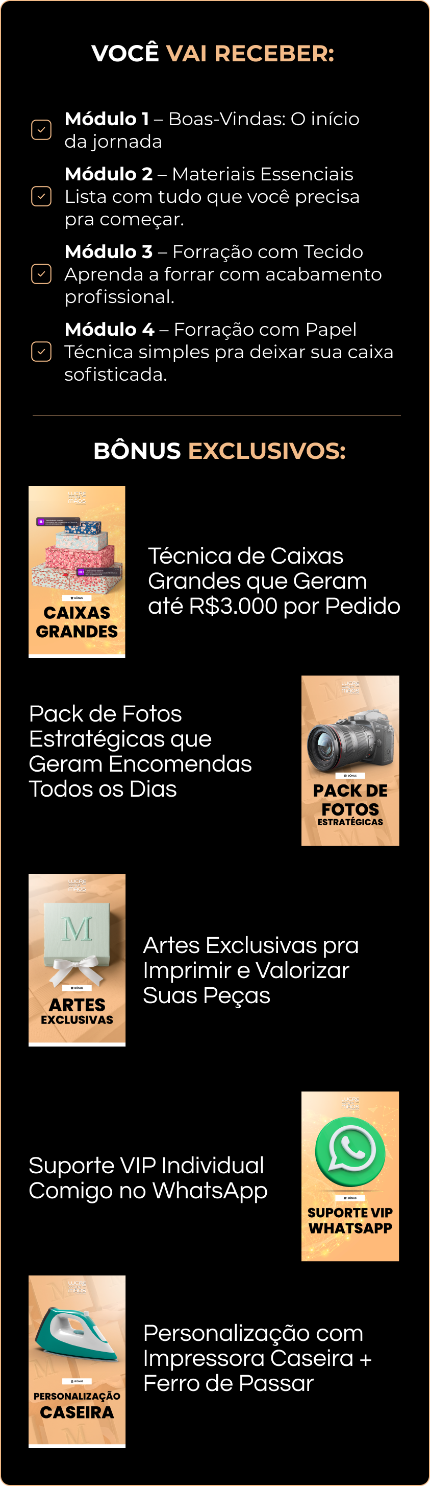 ÚNICA CHANCE: ATUALIZAÇÕES DO CURSO. Tenha acesso a todas as futuras atualizações do CURSO LUCRE COM AS MÃOS para sempre por metade do preço. Você quer ter as futuras atualizações do CURSO LUCRE COM AS MÃOS por mais 37,00? Sim, desejo adicionar ATUALIZAÇÕES DO CURSO LUCRE COM AS MÃOS pela metade do preço!