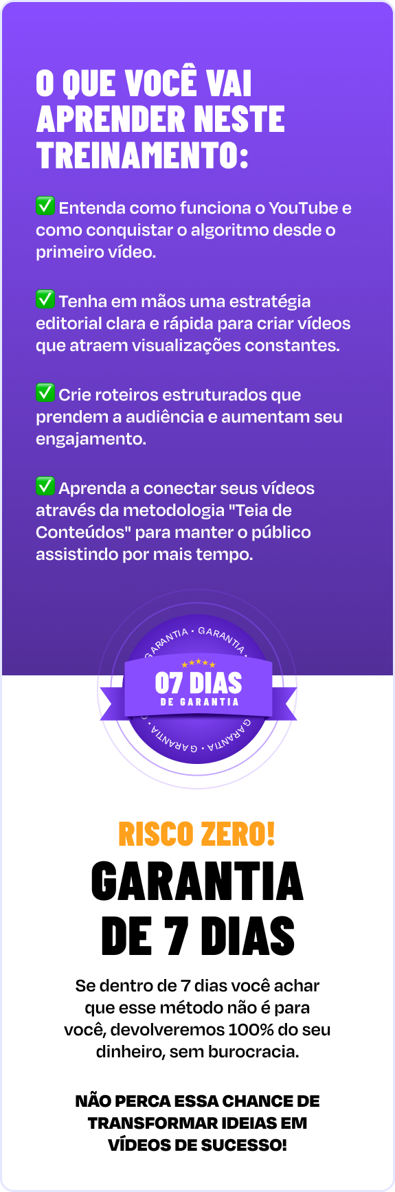 Eu treinei um Agente de IA para ajudar você a escrever roteiros seguindo toda a minha metodologia do curso. ✅ Ganhe tempo: O agente gera ideias e roteiros rapidamente. ✅ Ajuda personalizada: Coerência total com minha metodologia. ✅ Facilidade: Insira sua ideia e receba roteiros prontos para personalizar. Essa ferramenta é entregue APENAS PARA MEUS MENTORADOS, mas essa é uma oferta exclusiva pra você! ⚠️ Você nunca mais verá essa oferta de novo!