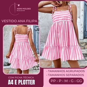 VESTIDO ANA FILIPA - Molde em PDF [ MOLDES SEPARADOS POR TAMANHOS ]