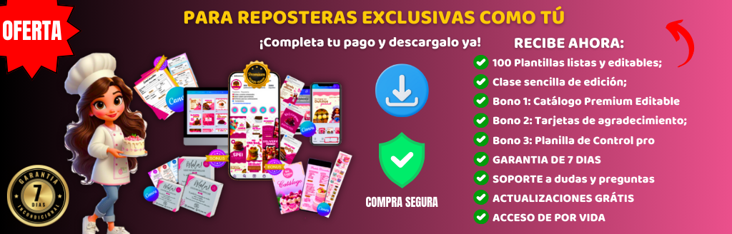 Kit Digital Repostera Premium | Todos los recursos que necesitas para destacar en redes sociales y organizar tu negocio de repostería/pastelería.