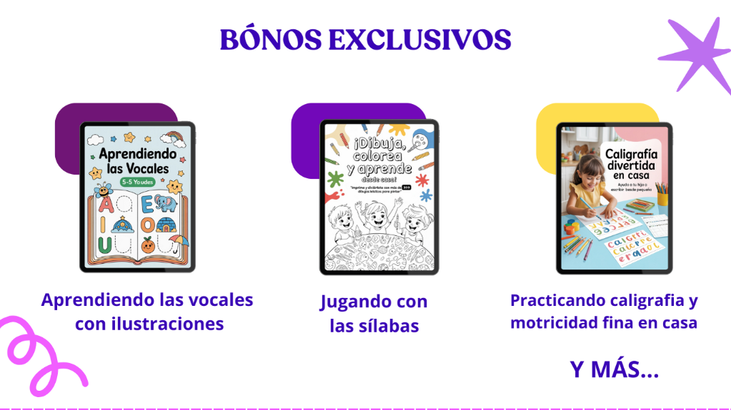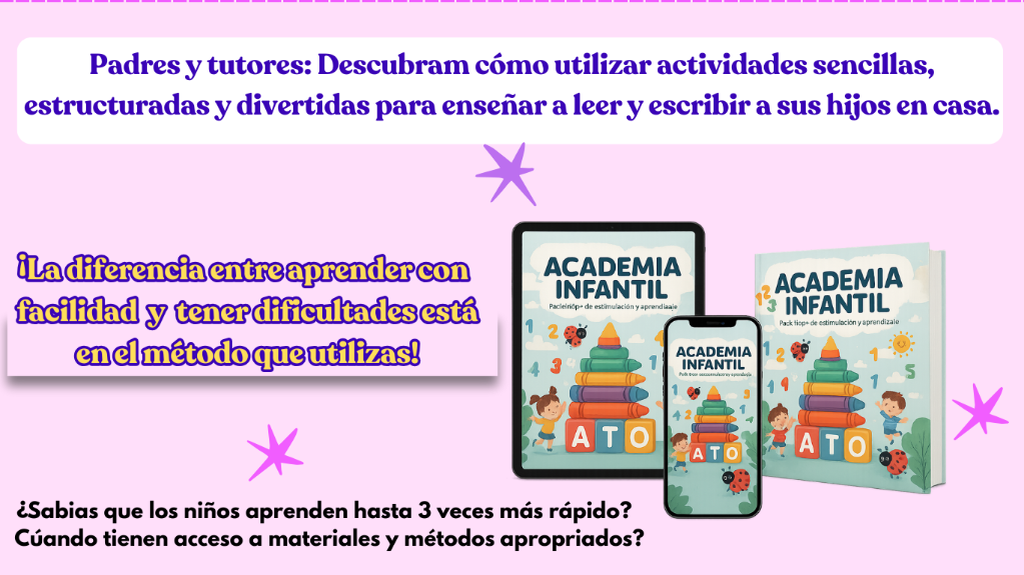 ¡Impulsa el progreso desde el primer día! Este complemento exclusivo de la Academia Infantil incluye ejercicios diarios, estrategias prácticas y un bono especial con recursos imprimibles para estimular el lenguaje en casa. Ideal para padres que quieren ver resultados más rápidos y efectivos.