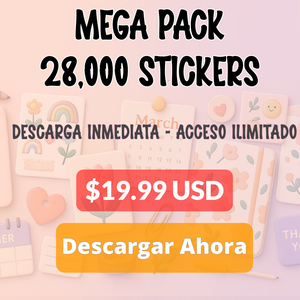 Con este Mega Pack tendrás una colección enorme de stickers creativos para personalizar tus diseños, agendas digitales, bullet journals, scrapbooking, imprimibles y mucho más