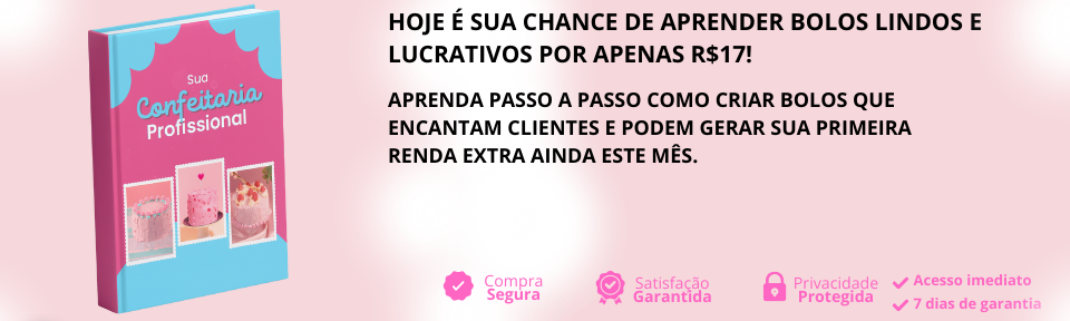 Textura firme, acabamento liso: o chantilly que vende o visual. • Como ajustar ponto, cor e textura pra chantilly que segura até delivery em dias quentes. • 5 técnicas pra deixar qualquer bolo com ‘cara de confeitaria de shopping. • As 3 combinações de chantilly + decoração que fazem o cliente pagar sem pedir desconto. • O erro silencioso que deixa seu chantilly molenga e mata seu acabamento (você pode estar cometendo isso agora).