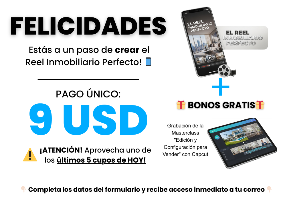 ¿Te gustaría llevarte la ESTRUCTURA EXACTA para grabar tus Reels de Captacion y conseguir tu próxima propiedad esta misma semana? (Esta oferta especial NO la volverás a ver) - Añádela por solo: