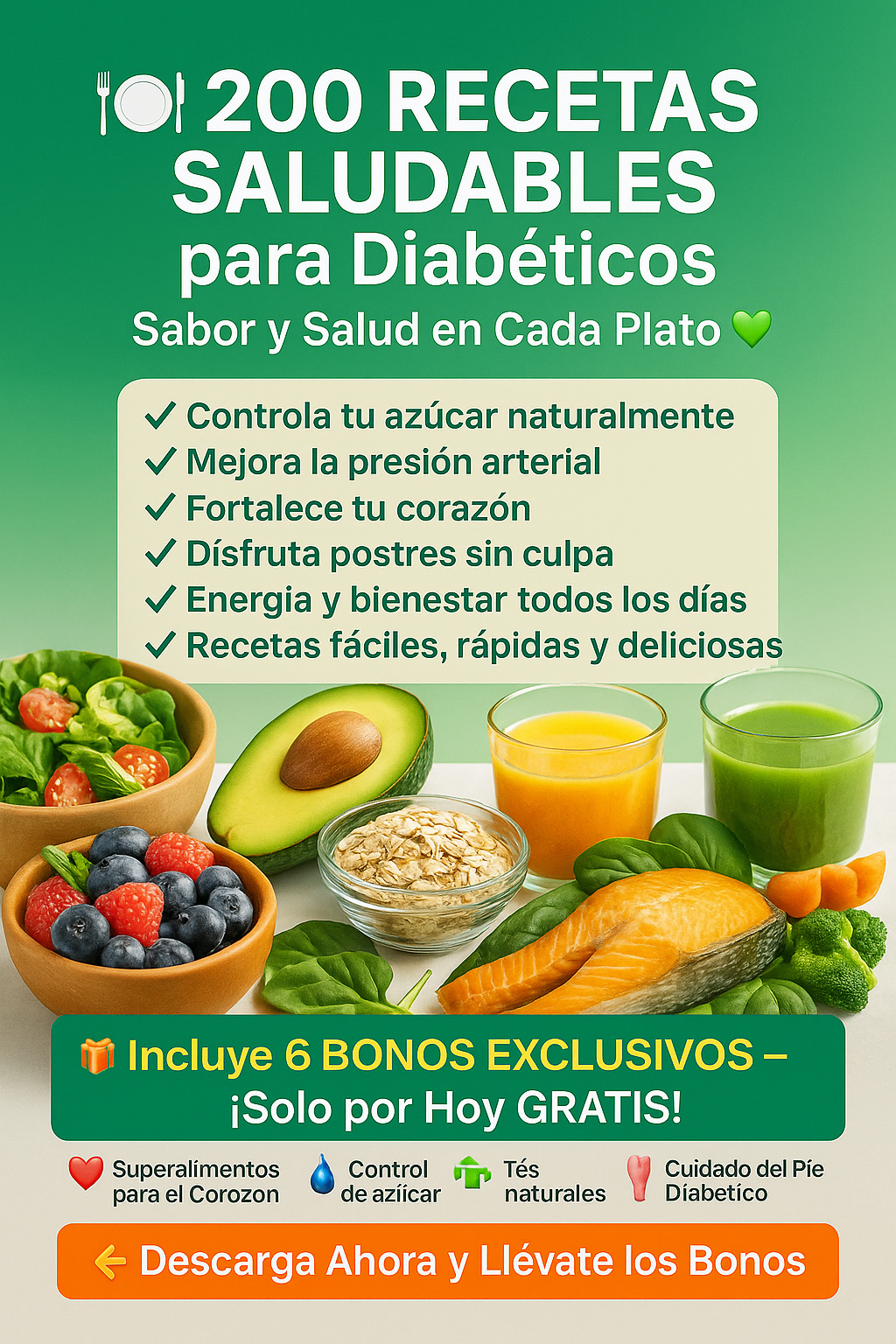 200 Recetas para diabéticos + 6 Bonos Exclusivos 🎁