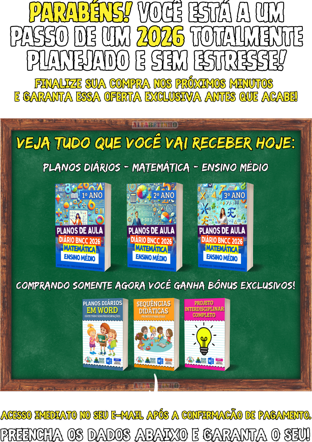 360 Atividades e 150 Planejamentos, todos organizados por Ano e Bimestre,perfeitas para uso imediato. 🎁 GANHE BÔNUS EXCLUSIVOS: 1️⃣ PLANEJAMENTOS EM WORD 2️⃣18 PLANOS DIÁRIOS 3️⃣ ATIVIDADES EM WORD 4️⃣ GABARITOS DAS ATIVIDADES 😱 DESCONTO IMPERDÍVEL, APENAS AGORA!
