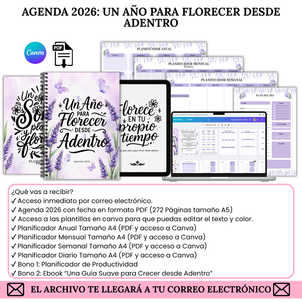 Agenda 2026 Lavanda + Planificadores