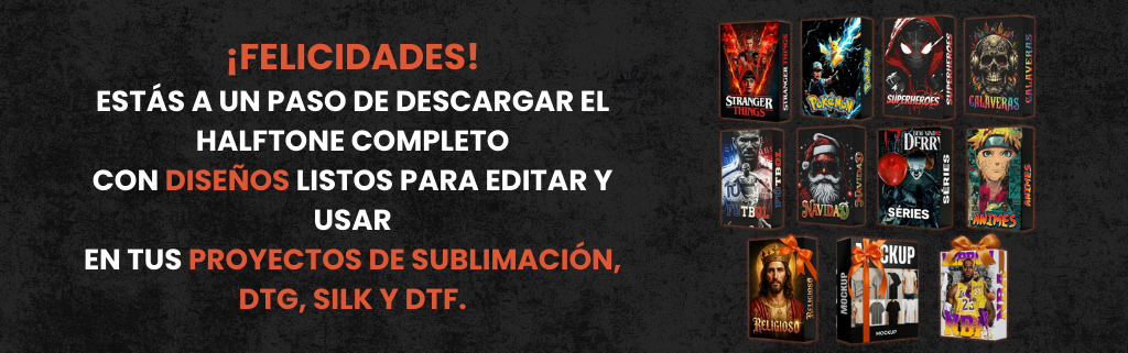 Aprovecha esta oportunidad única y llévate 4 colecciones completas con un solo clic. 🚀 Más diseños, más variedad, más ventas. Perfecto para quienes quieren un catálogo fuerte con estilos que venden todos los días. Incluye los siguientes packs: 🍿 Películas – Halftone 🎮 Videojuegos Retro – Halftone ⚽ Copa del mundo - Halftone 🎸 Bandas Rock – Halftone 🎁 Bono - Streetwear – Halftone ⚠️ Oferta exclusiva solo aquí en el checkout.