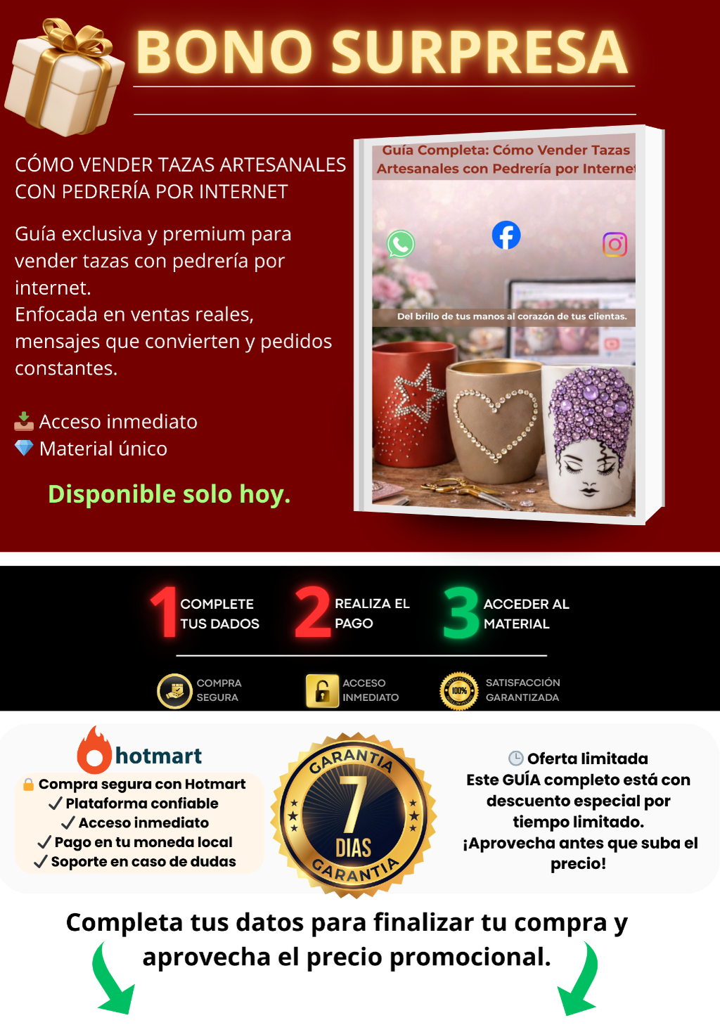 Aprende paso a paso a decorar accesorios de belleza con pedrería y transforma cepillos, estuches y espejos en piezas elegantes, brillantes y personalizadas. Descubre los materiales, herramientas y técnicas correctas para lograr un acabado profesional, incluso si eres principiante. Ideal para uso personal o para crear piezas únicas que también puedes vender. 🟢 Haz clic en “Agregar producto” para aprovechar esta oferta única.