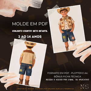 ✨NS Molde em PDF - Conjunto Country Beto Infantil ID 7591305 [2 ao 14 anos]✨