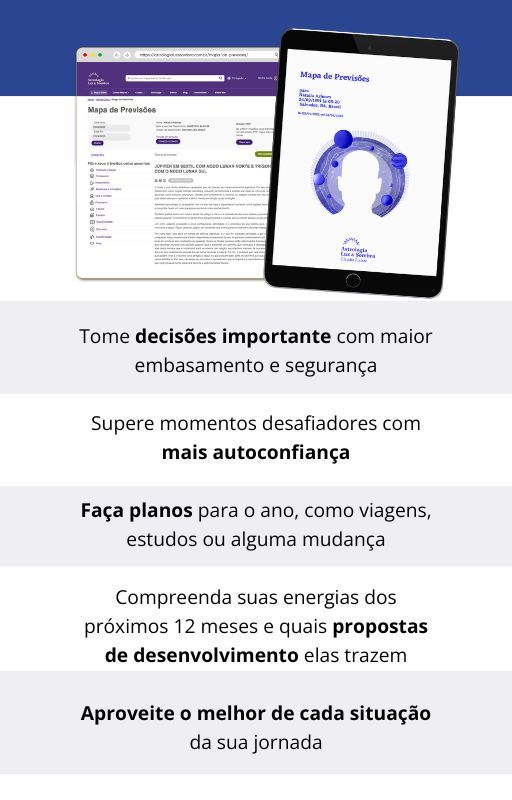 Diferente do seu Mapa de Previsões, que é uma excelente ferramenta para entender os desafios e oportunidades dos próximos 12 meses, o Mapa Astral Digitalizado é o primeiro passo no seu conhecimento astrológico por ser a fotografia do céu no dia do seu nascimento. É ele que aponta as grandes potências e missões da sua vida.