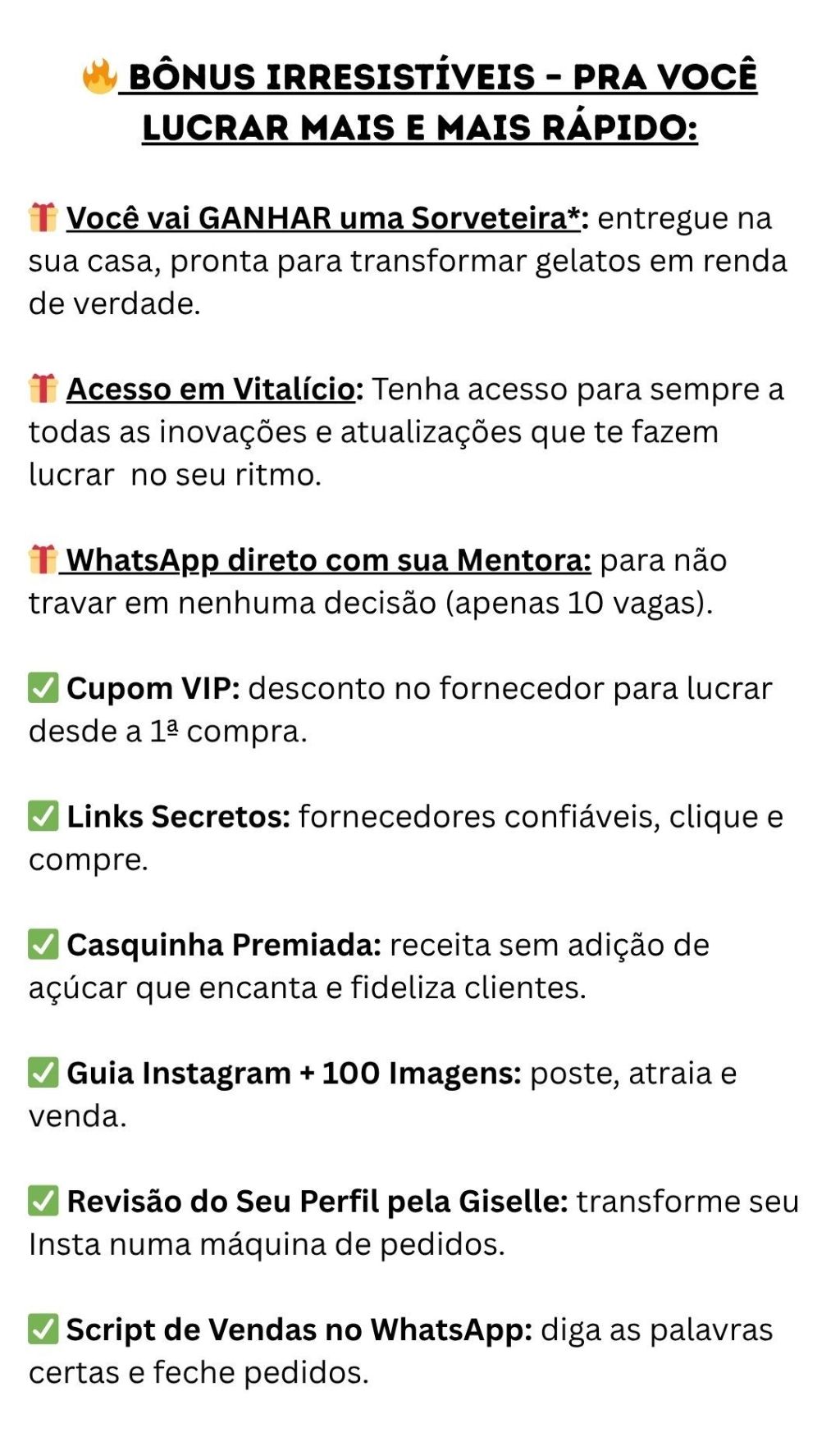 Só 10 levam a sorveteira e a mentoria no WhatsApp. Acabou, acabou.