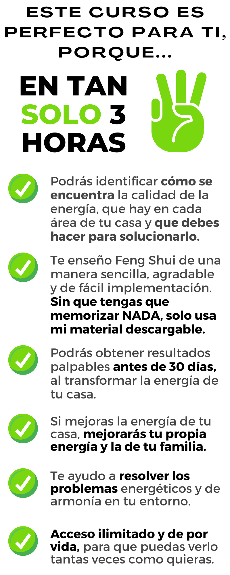 Este programa te enseña a realizar los cambios energéticos en tu casa. En 30 días empezaras a ver los resultados, siempre y cuando, apliques todo lo que aprendas en este programa.