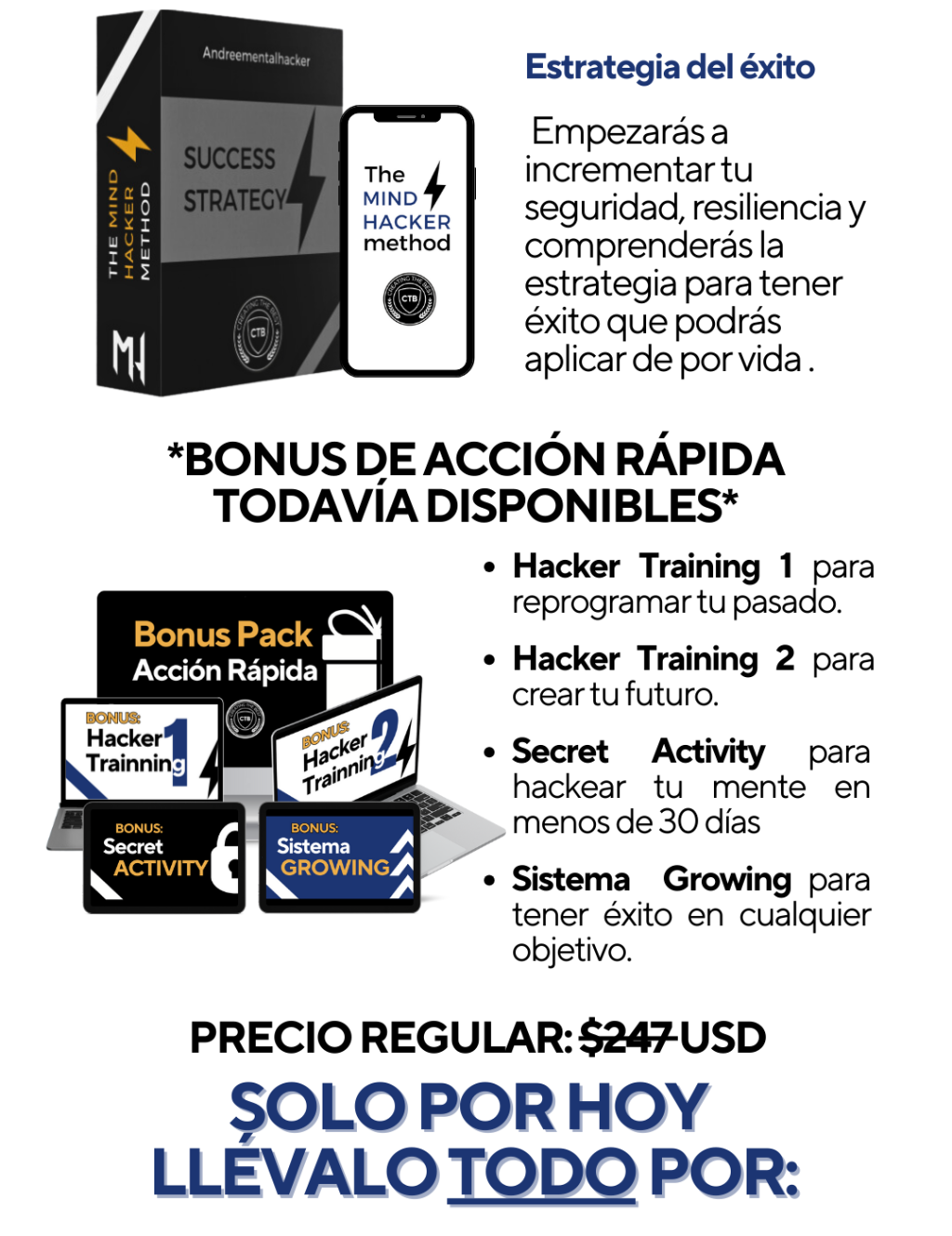 Aplica estos 6 hacks ultra-secretos y aumenta 70% la tasa de tu éxito (aplicable a cualquier objetivo en tu vida) Obtén mi metodología aplicada en mis +13 años de experiencia y descubre cuales son los 6 hacks que las personas con más éxito en el mundo utilizan para asegurar sus logros. Solo necesitas conocer estos 6 hacks ultra secretos para acercarte al éxito que te propongas en tus finanzas, en el amor, la salud o tu vida profesional. Aprovecha esta oferta especial SOLO EN ESTA PÁGINA.