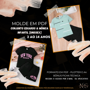 🧵[Molde em PDF] - Conjunto Eduardo & Mônica Infantil [Unissex] ID 3741918 [2 ao 14 anos]✨