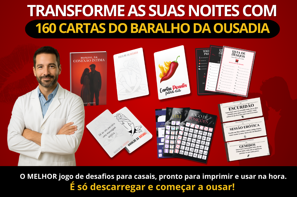 Mergulhe em fantasias com 50 cartas de RPG erótico e transforme as suas noites em aventuras cheias de paixão, diversão e descobertas.