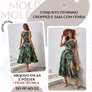 Conjunto Feminino | Cropped e Saia com Fenda - Molde em PDF