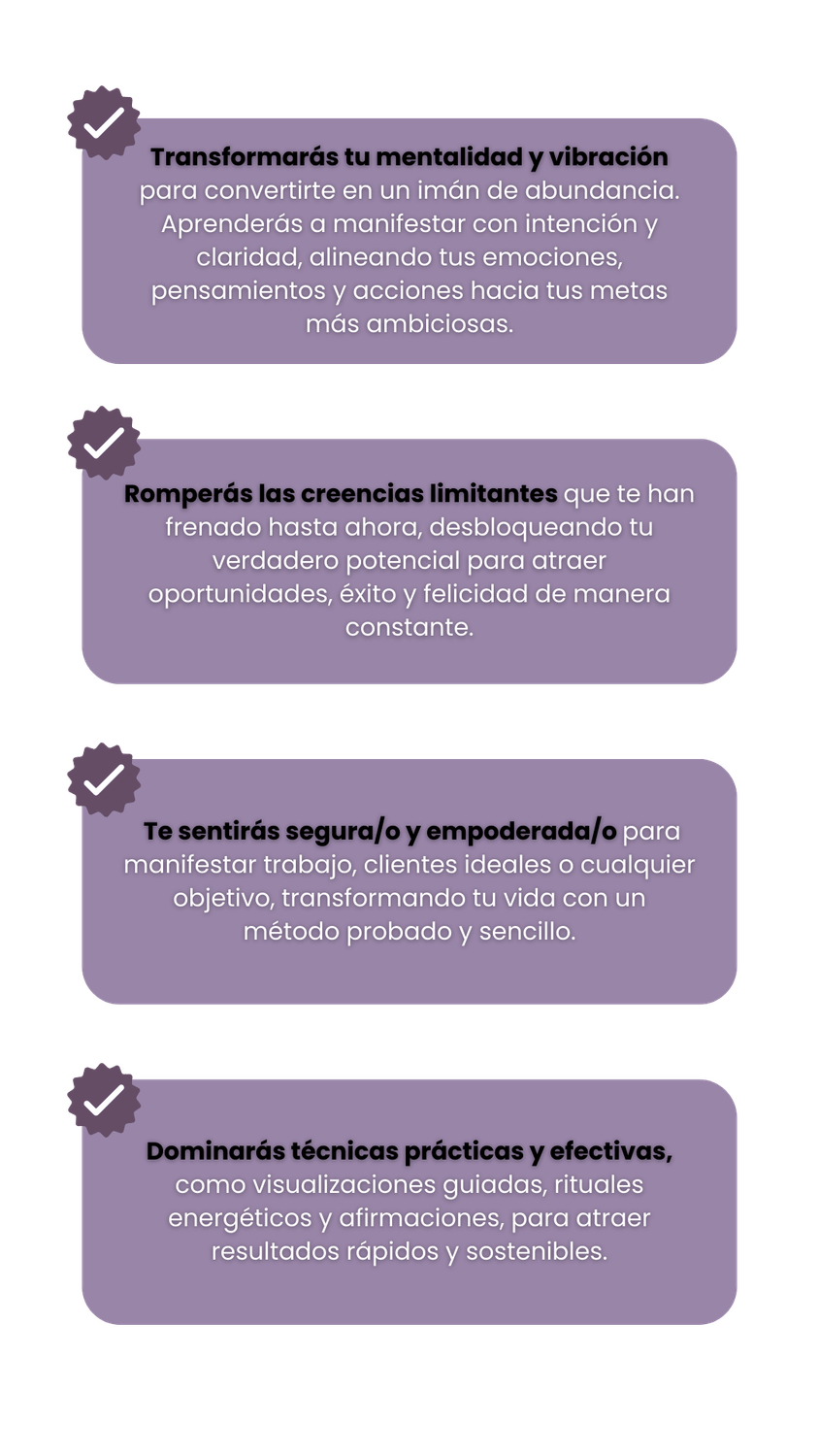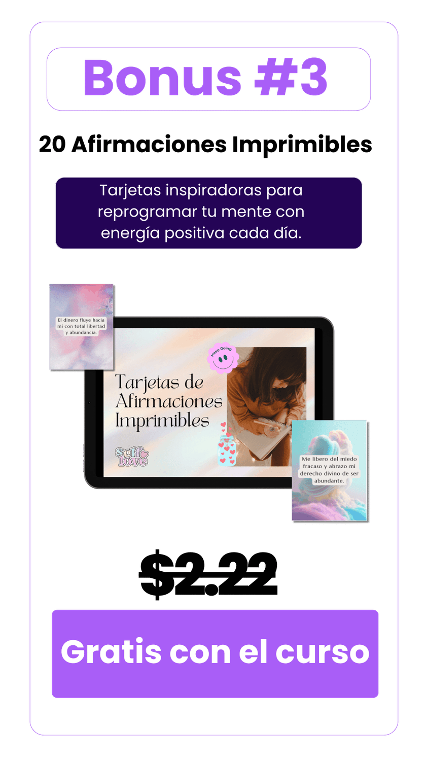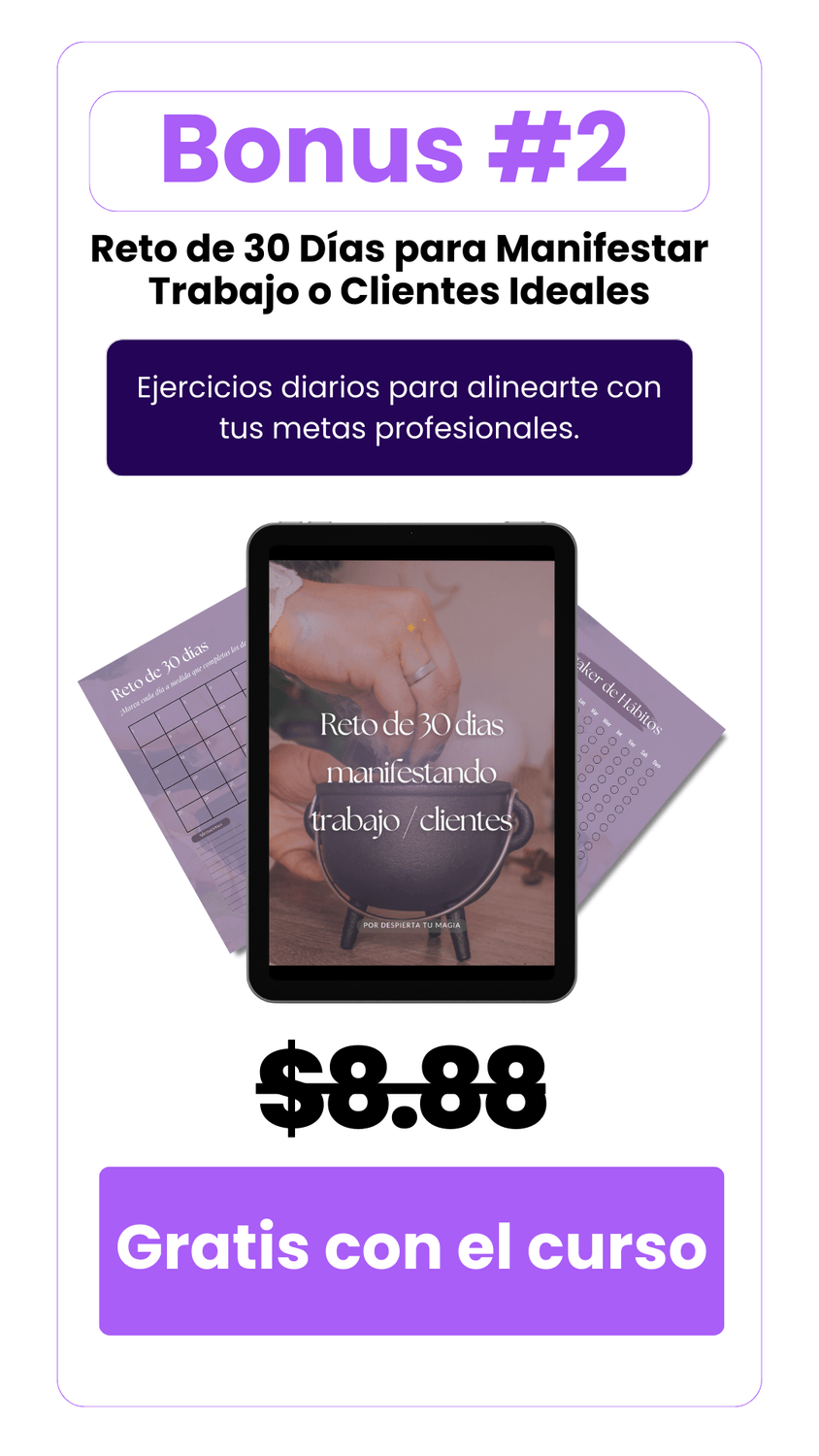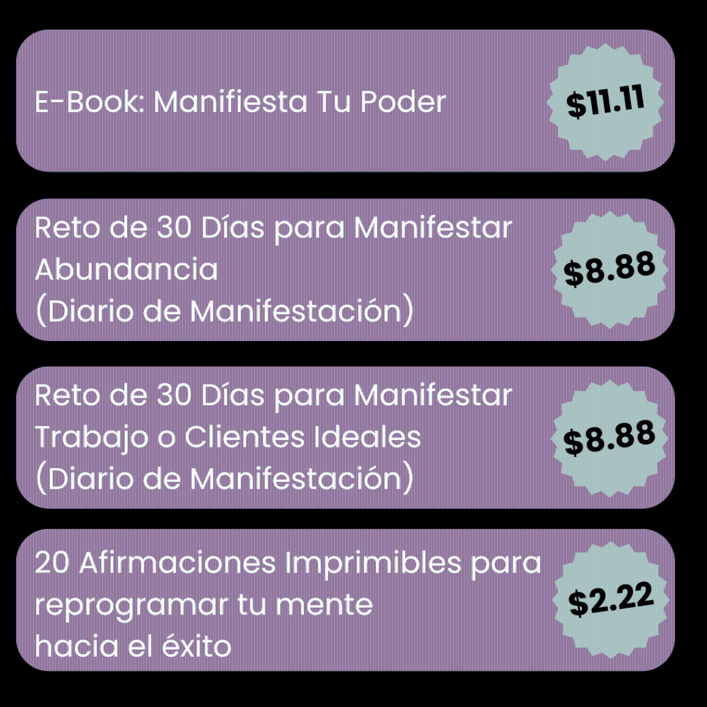 Con Manifiesta Tu Poder, aprenderás cómo transformar tu energía, superar bloqueos mentales y tomar las acciones necesarias para atraer clientes ideales, tu trabajo soñado o esa vida llena de propósito que siempre has querido.