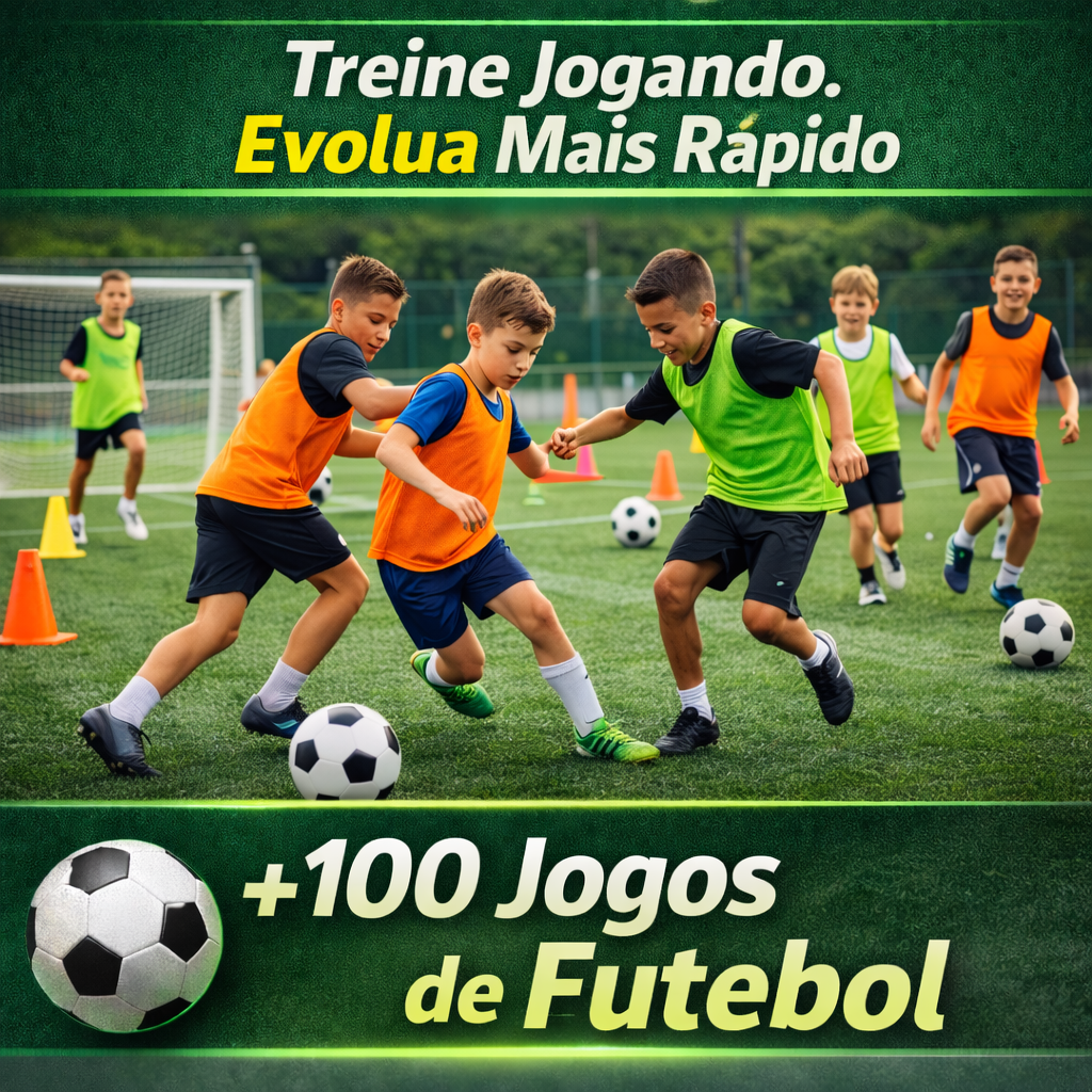 Com o nosso eBook "100+ JOGOS PARA FUTEBOL", você vai aprender jogos dinâmicos e inovadores para melhorar o desempenho de sua equipe, desenvolver a inteligência tática e proporcionar treinos mais envolventes.Tipos de Jogos: