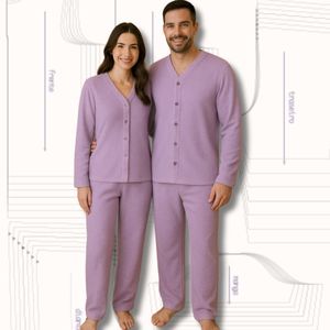 KIT PIJAMA LONGO COM ABOTOAMENTO PARA CASAL - REF 4018 E 4021