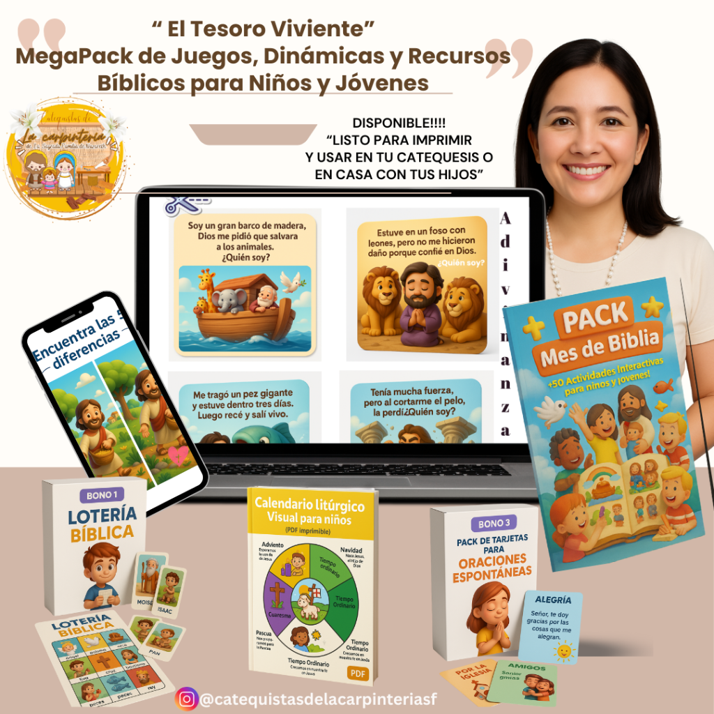 ¿Quieres que los chicos conozcan y amen a la Virgen María desde pequeños? Este set exclusivo incluye historias bellamente adaptadas sobre las principales advocaciones marianas (como Lourdes, Guadalupe, Fátima, entre otras), contadas de forma sencilla, visual y cercana… acompañadas de actividades didácticas que los ayudan a reflexionar y divertirse mientras aprenden. 🎯 Ideal para enriquecer encuentros de catequesis, trabajos en casa o momentos en familia.