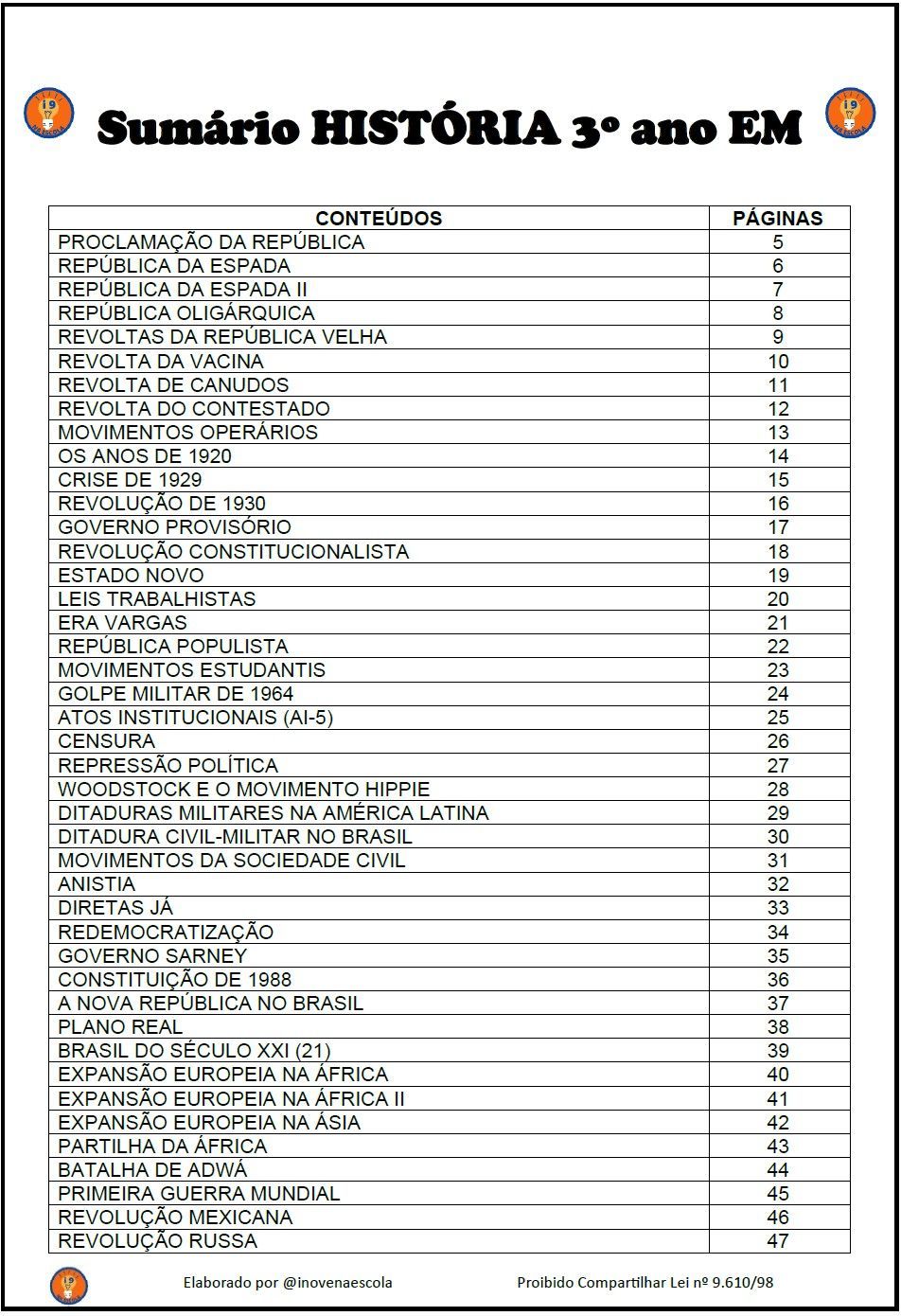 História 3º ano EM Atividades Adaptadas