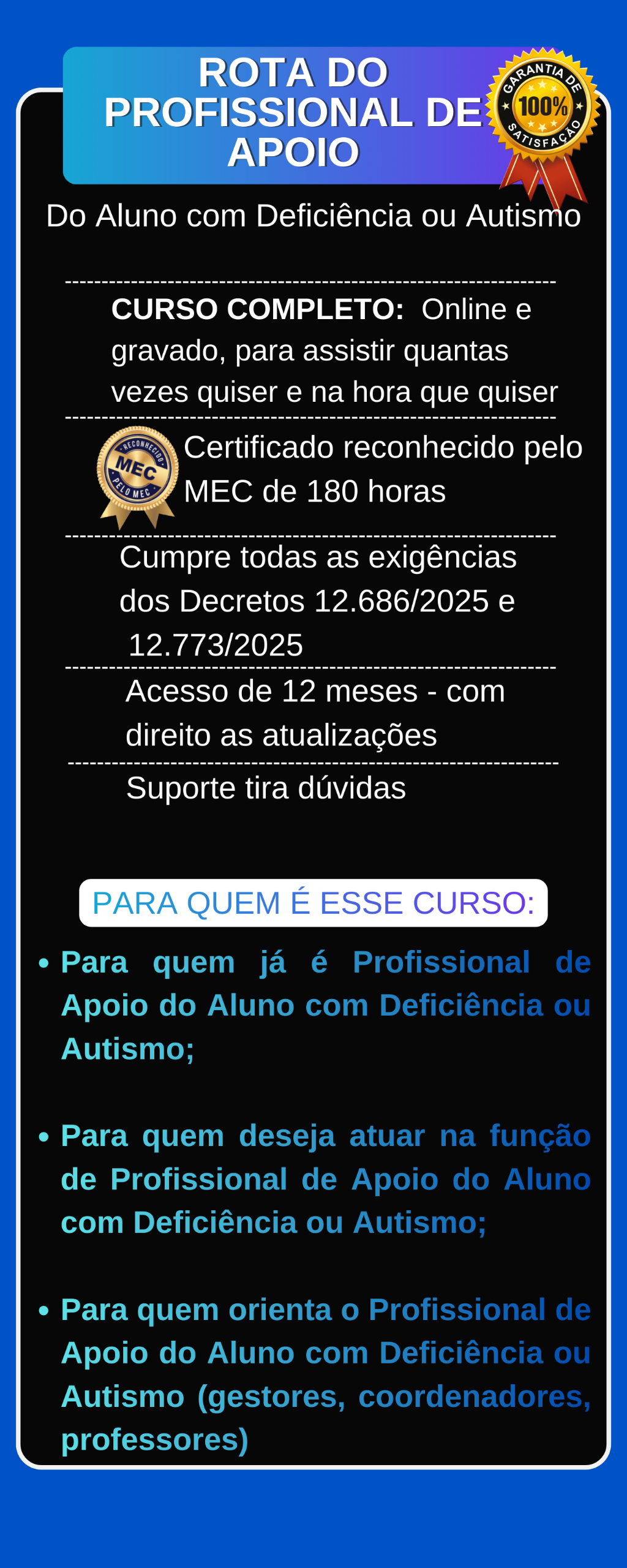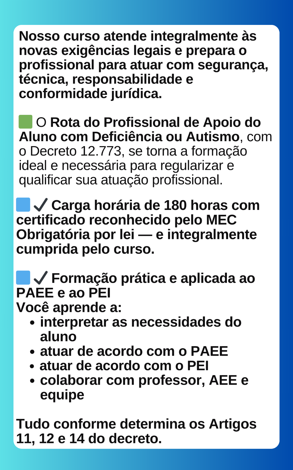 Nosso curso atende às novas exigências dos últimos decretos que Alteram a politica de educação Especial Decreto Federal nº 12.773/2025 e 12.686/2025