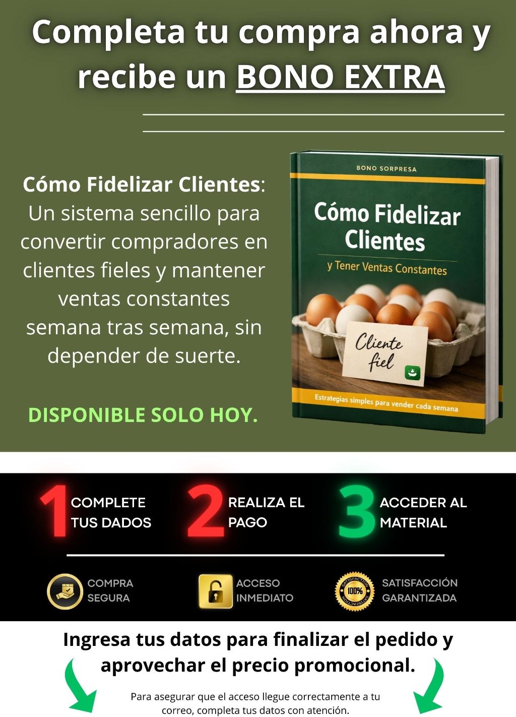 La mayoría de las pérdidas en la producción de huevos ocurren por enfermedades que podrían evitarse. En esta guía aprenderás a identificar señales tempranas, aplicar rutinas simples de prevención y proteger tu parvada antes de que los problemas afecten tu producción y tus ingresos. Ideal para reducir riesgos y ganar tranquilidad en el día a día. 🟢 Haz clic en “Agregar producto” para aprovechar esta oferta única.