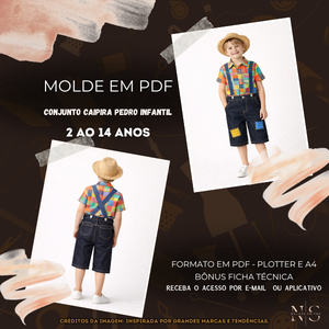 ✨NS Molde em PDF - Conjunto Caipira Pedro Infantil ID 7559913 [2 ao 14 anos]✨