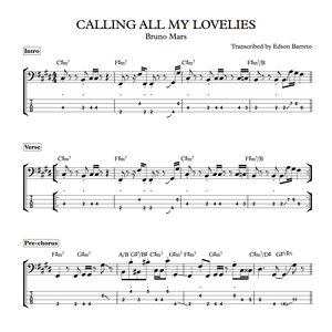 CALLING ALL MY LOVELIES (Bruno Mars) Bass Score & Tab Lesson