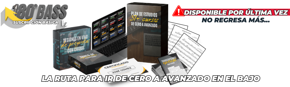 Acceso a 180Bass: Todos los Cursos del Plan de Estudios (m谩s cursos nuevos) y Acceso a Todas las Series Canci贸n Semanal para Aprender y Descargar