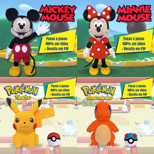 COMBO Mickey e Minnie + Pikachu e Charmander em Amigurumi - Passo a passo