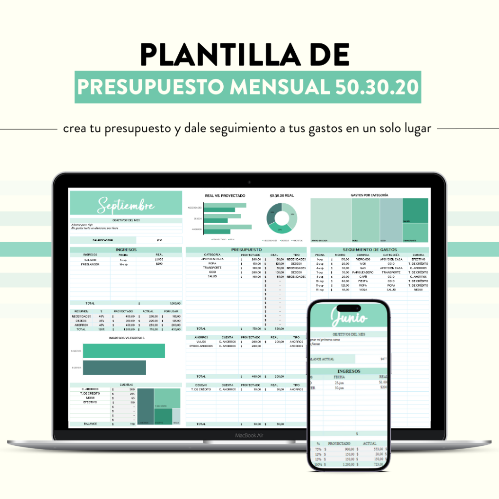 Plantilla de Presupuesto Mensual 50.30.20 - Esmeralda