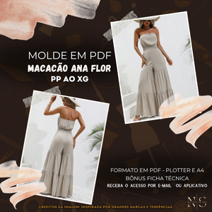 ✨NS Molde em PDF - Macacão Ana Flor ID 3647727 [PP ao XG]✨
