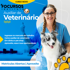 Auxiliar de Veterinário Auxiliar na coleta de material para exames clínicos, portanto, primeiros socorros, procedimentos de acesso intravenoso, intubação, etc. Seja um profissional capacitado para exercer essa profissão. Conteúdo programático 01Introdu