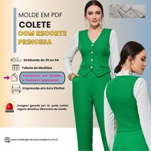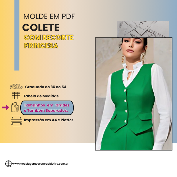 BL296 -MOLDE EM PDF - COLETE RECORTE PRINCESA (com vídeo de modelagem e dicas de costura)