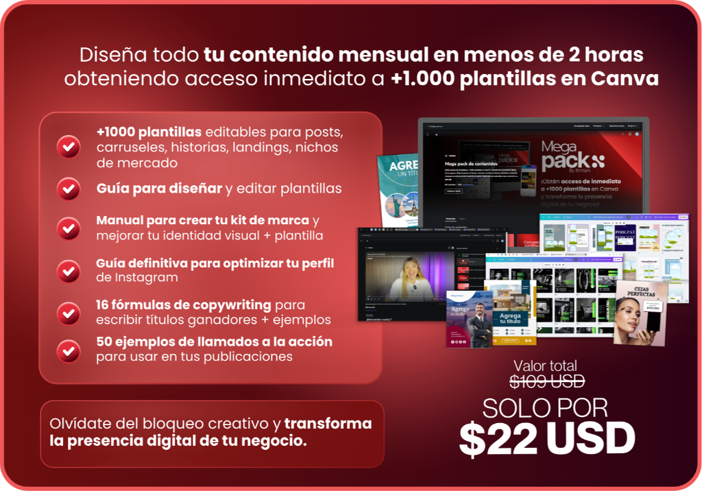 Ahora que tienes +1.000 plantillas listas, aprende a adaptarlas con intención. En Canva Club dominas cómo diseñar rápido, mantener coherencia visual y crear contenido que impacta, para sacarle el máximo provecho a cada plantilla sin empezar desde cero.