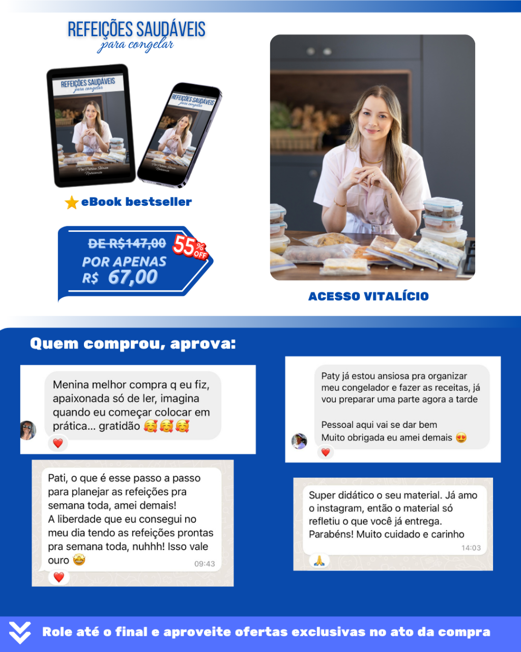 SOMENTE AQUI NESTA PÁGINA. Garanta seu Ebook Saladas Perfeitas para o dia a dia com um DESCONTO ESPECIAL de R$127,00 por R$47,00! São mais de 40 receitas de saladas e mais de 20 receitas de molhos para salada, além de 10 receitas para acompanhamentos. Acesso vitalício *Ao sair desta página você; perderá; essa oportunidade de desconto.