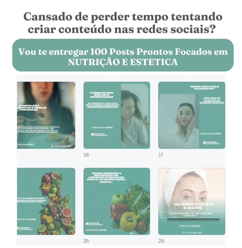 🌱 Transforme seu Instagram com o Pack de Nutrição Vegana! 🍃 Está pronta para atrair mais clientes e se destacar no mercado vegano? Com o Pack de Posts Prontos de Nutrição Vegana, você vai ter em mãos conteúdos estratégicos que vão fazer seu perfil crescer com autoridade e engajamento! 🔸 O que você vai ganhar? Posts completos com imagens e legendas focadas em Nutrição Vegana. APROVEITE ESSA OFERTA