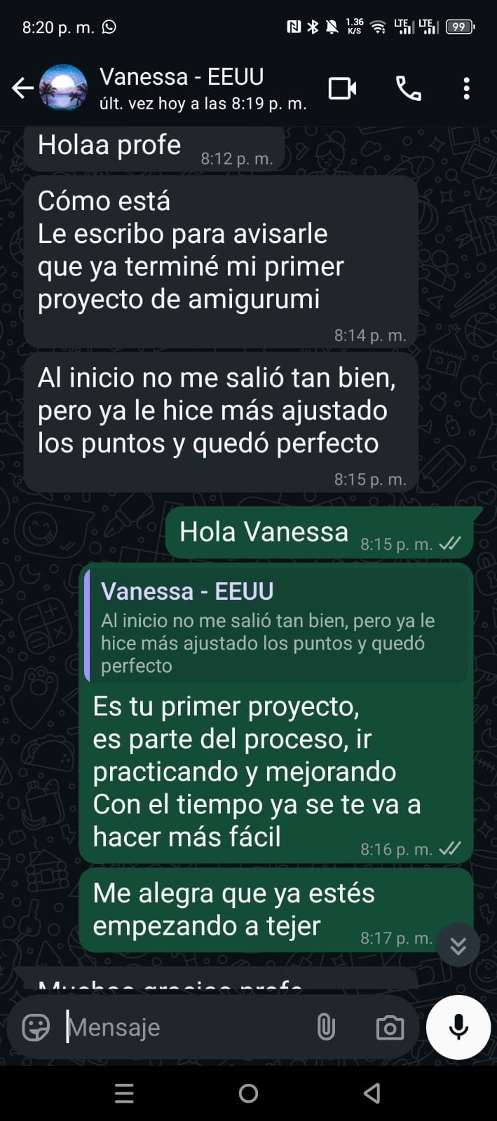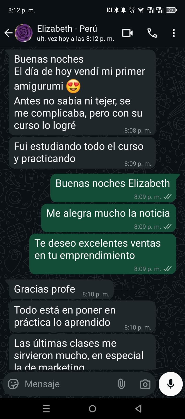 "Me encanto el curso de amigurumis, todo está muy bien explicado. Lo recomiendo al 100%."