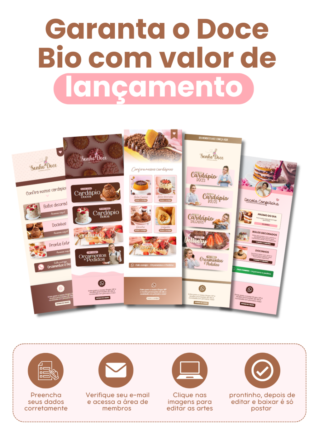 Receba posts de frases e modelos de reels prontos para usar, adaptar e viralizar, tudo feito especialmente para confeiteiras que desejam atrair mais clientes, aumentar o engajamento e vender mais todos os dias!