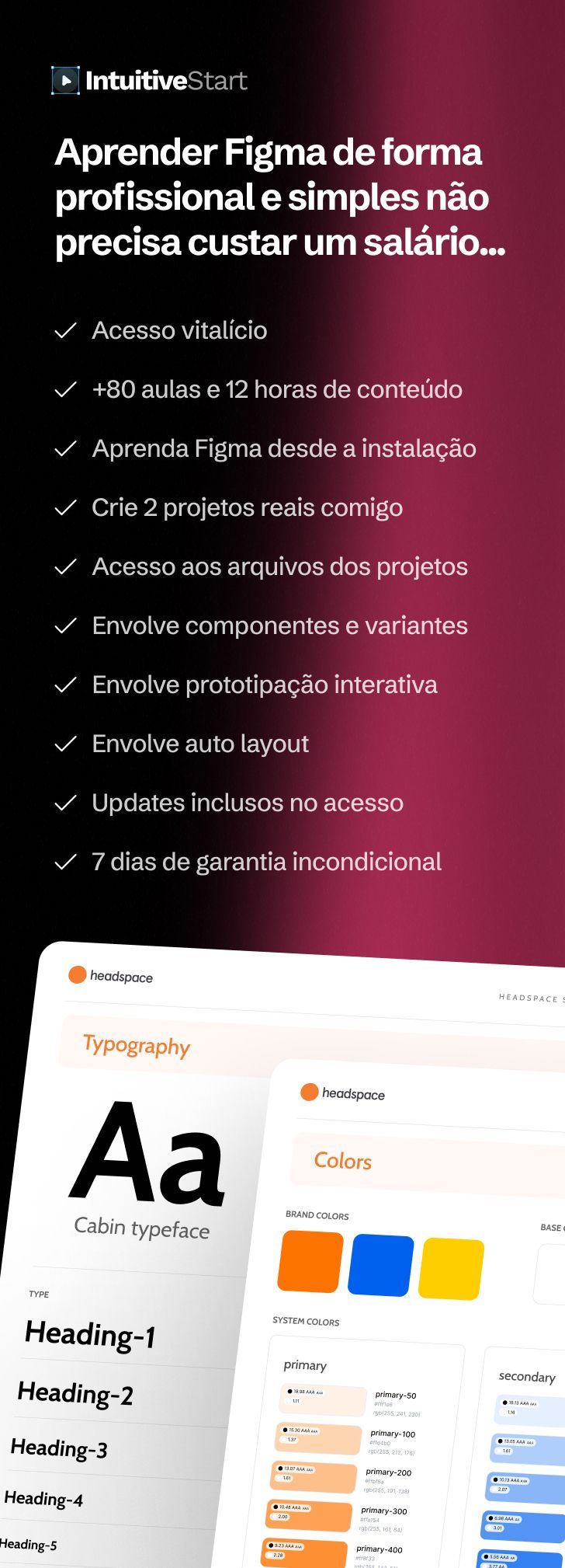 🚀 Seu próximo passo depois de aprender Figma: um curso com foco em boas práticas de UI & UX para interfaces bonitas, usáveis e estratégicas. Acesso Vitalício: De R$597,00 por apenas R$367,00. ✅ +120 aulas focadas em práticas de UI & UX para melhores interfaces ✅ Acesso vitalício ✅ Comunidade Discord e WhatsApp para suporte ✅ Guias em Notion de UX / UI ✅ Suporte com o instrutor ✅ E muito mais!