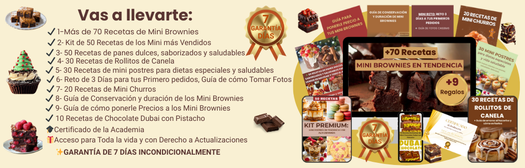 Descubre el secreto para hacer y vender Mini Brownies perfectos y convertir tu pasión en ingresos reales. Hoy mismo te llevas más de 70 recetas exclusivas que enamoran paladares y atraen clientes que vuelven por más¡Descárgalo ahora y empieza ya!
